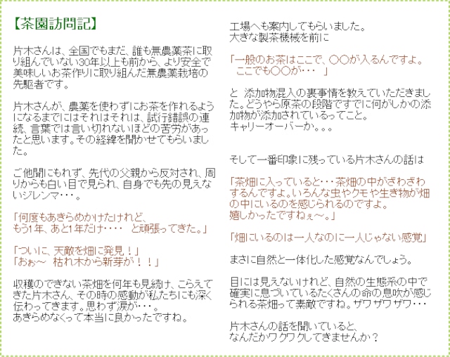 3月下旬に塞い冬を耐えて越した完熟茶葉を収穫・製造加工し、